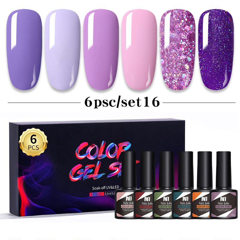 Nail Gel Polish Set 6 Bottles Manicure UV Soak Off Color Coat Gels