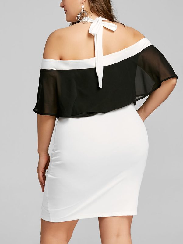 Romantic Black & White Off Shoulder Halter Boutique Party Dress Plus Size