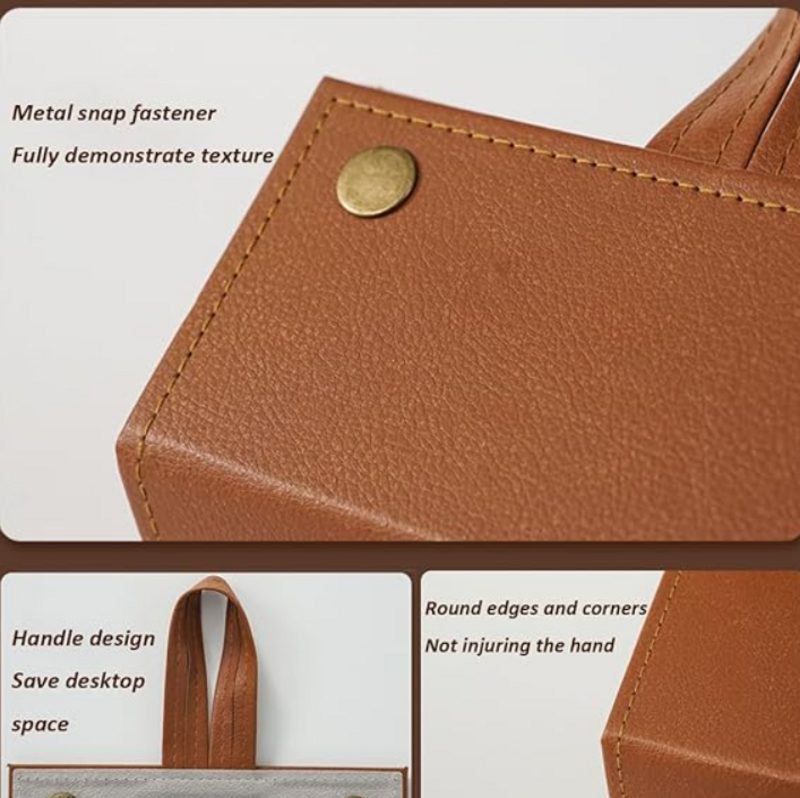 Material: PU leather outer layer, flocked inner layer.