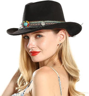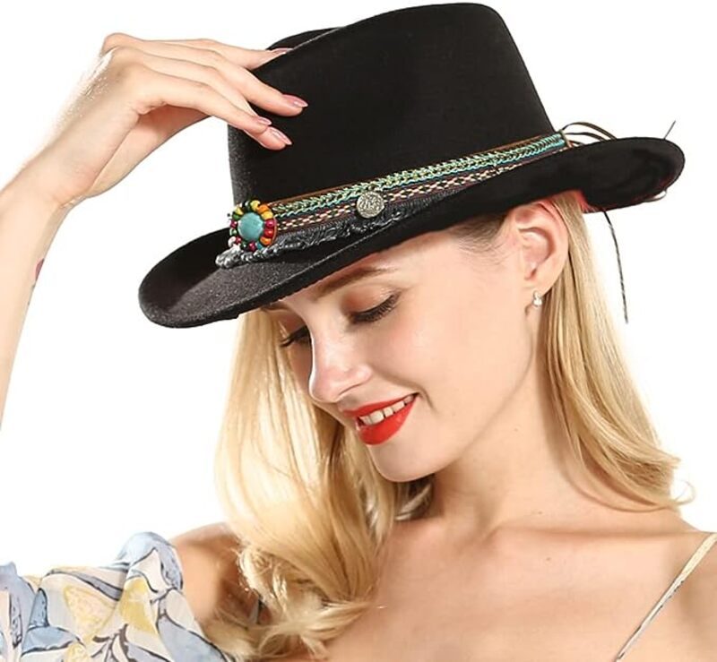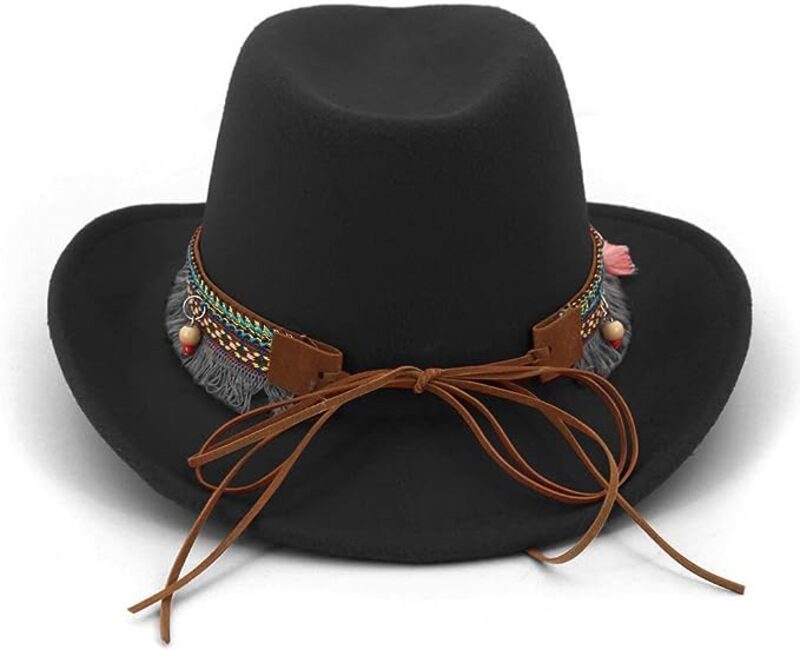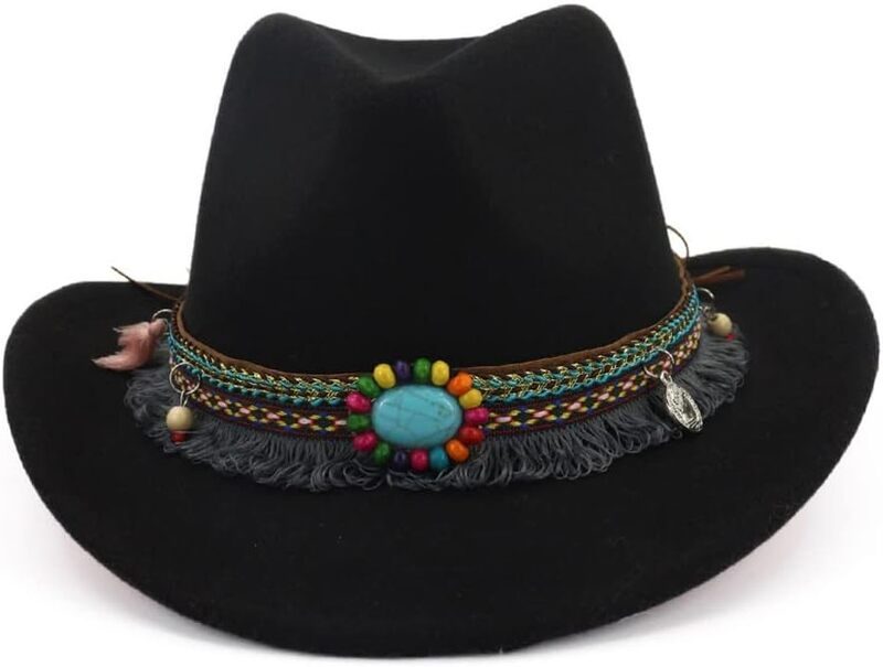 Brand New Vintage Ethnic Style Felt Western Cowboy Hat Wide Brim Fedora Panama Cowboy Girl Hat Casual Jazz Cap for Men Women Outback Cowgirl Hat Rodeo Gus Winter Trilby Hat with Ethnic Band Women Sombrero Outdoor Warm Panama Hat