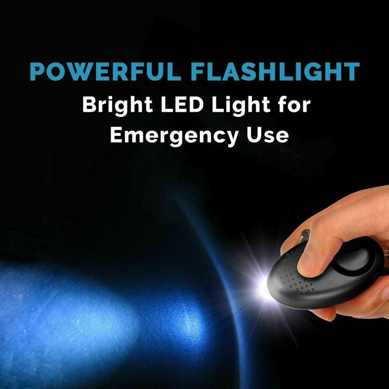 Convenient and Compact Design: portable size self defense keychain alarm for easy storage and carrying and easily attaches to bag, backpack,schoolbags,belt loops,suitcases,keys,dog belts or purse for quick access.