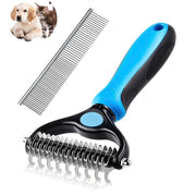 Brand New Professional 2pcs Pet Grooming Tools Set, 2 Sided Undercoat Dematting Grooming Cleaning Brush Rake Dog Cat Shedding Comb (Blue)