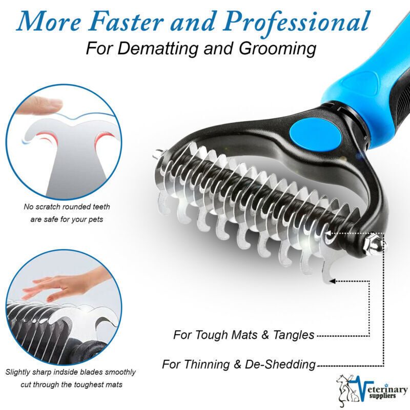 Start with 9 teeth side for stubborn mats and tangles and finish with 17 teeth side for thinning and deshedding. Achieve faster and more professional dematting and grooming results