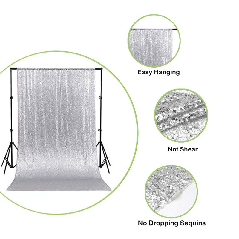 The background is made of sequin mesh fabric, seamless, and sequins are not easy to drop. All sides over locked with folded and hemmed edges, and it is therefore difficult to cause deformation