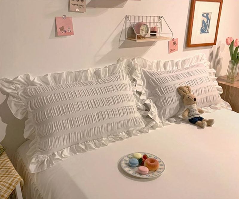 Brand New Set of 2 White Victoria Ruffle Pillow Case Standard Lace Pillowcases Country French Decorative Pretty Princess Frilly Pillow Cover Pillowcase