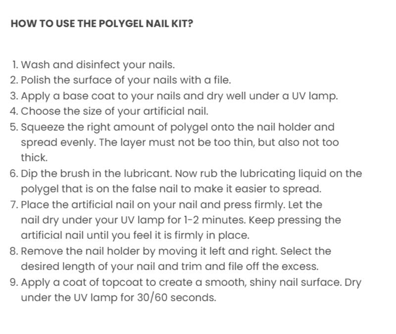 Light and comfortable: You won't even know you're wearing them! The unique polygel ensures smooth and beautiful nails and an even, beautiful color.
