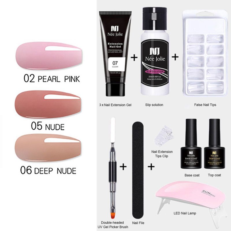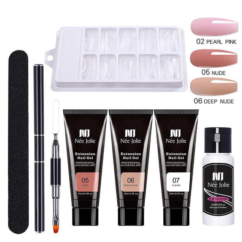 Brand New Nee Jolie Poly Nails Gel Set, Poly Extension Gel Nail Colors, White Pink Series Poly Nail Gel, 3pcs x 15ml Gel Nail Poly Extension for Art Design, Poly Nail Enhancement for Beginner Starter Salon DIY 3PCS/LOT