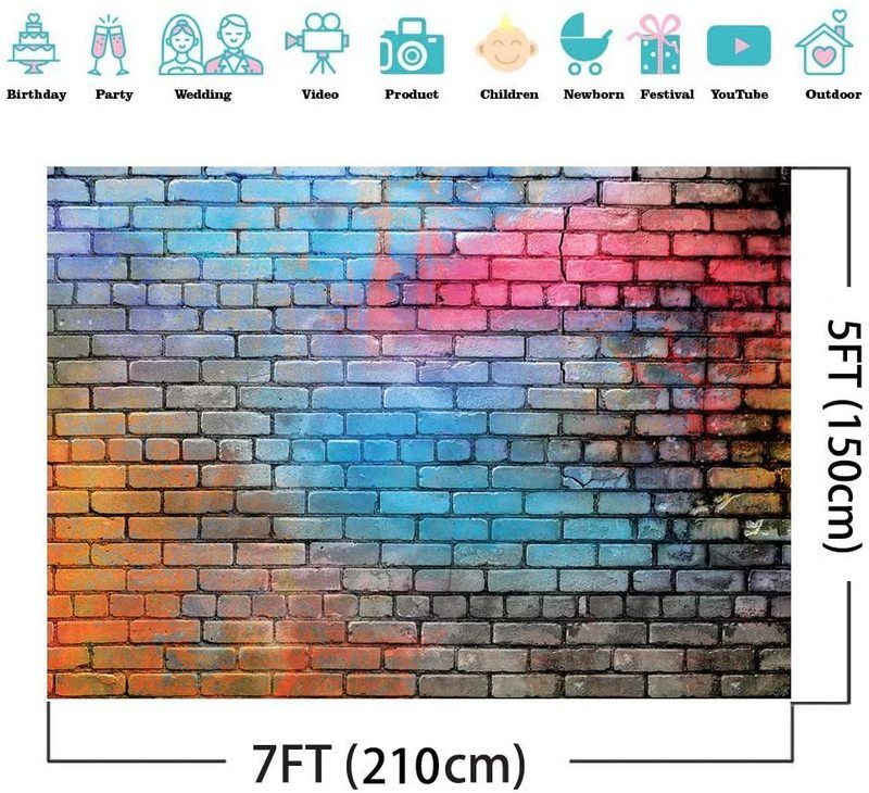 Brand New Professional Photography Backdrop, Retro Multicolor Brick Wall Photo Background,Photography Backdrop Photo Studio Props Portrait Shooting Banner Photobooth Props Art Cloth Studio Party Portrait Photo Booth Studio Props DIY Decorations for, Kids, Adult, Family Headshots, Photo Studio, Video Studio