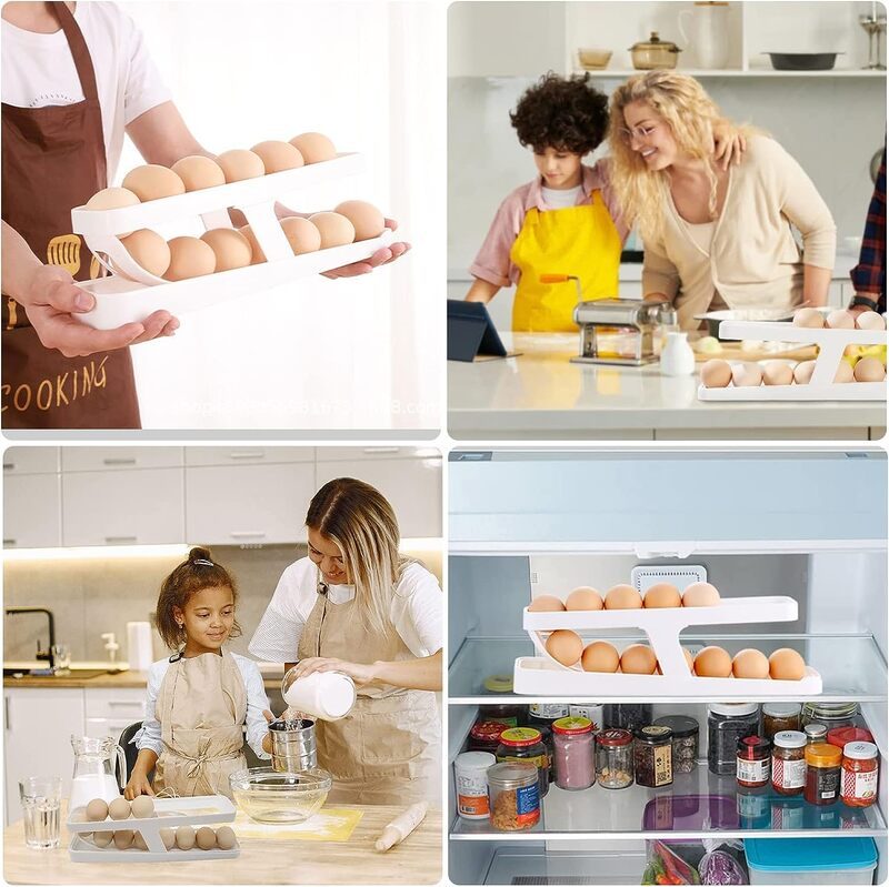 This auction is for Brand New Egg Holder for Refrigerator, Fridge Egg Dispenser, Automatic Rolling Egg Container, 2 Tier Egg Dispenser, Space Saving Egg Tray for Refrigerator, Egg Holder
