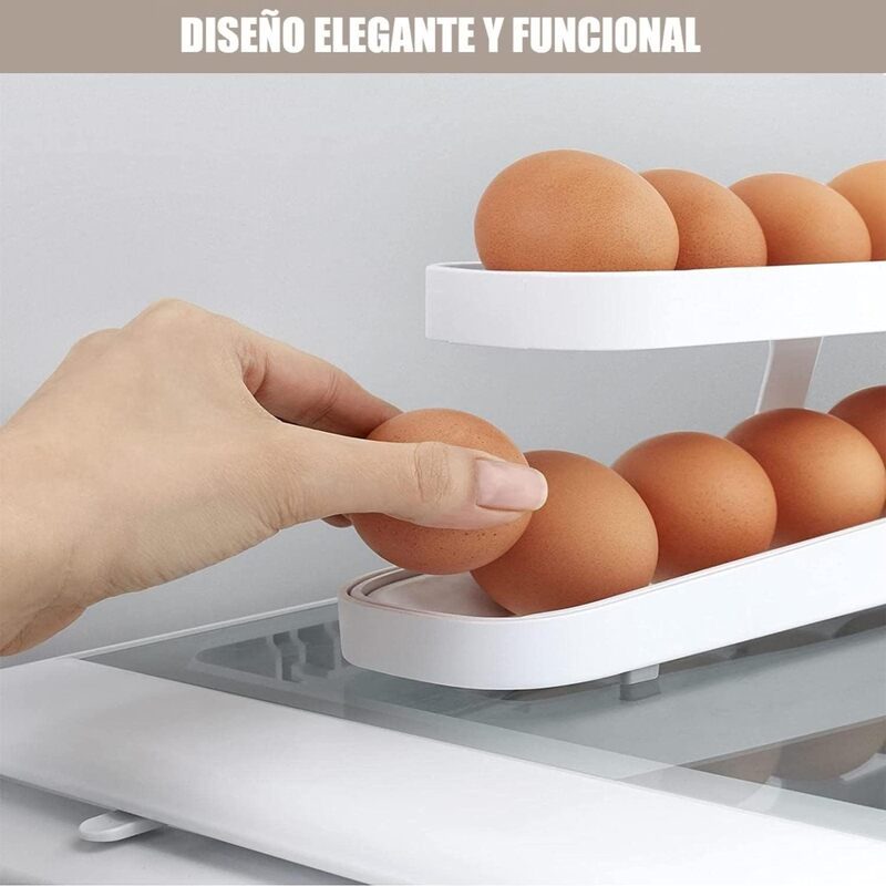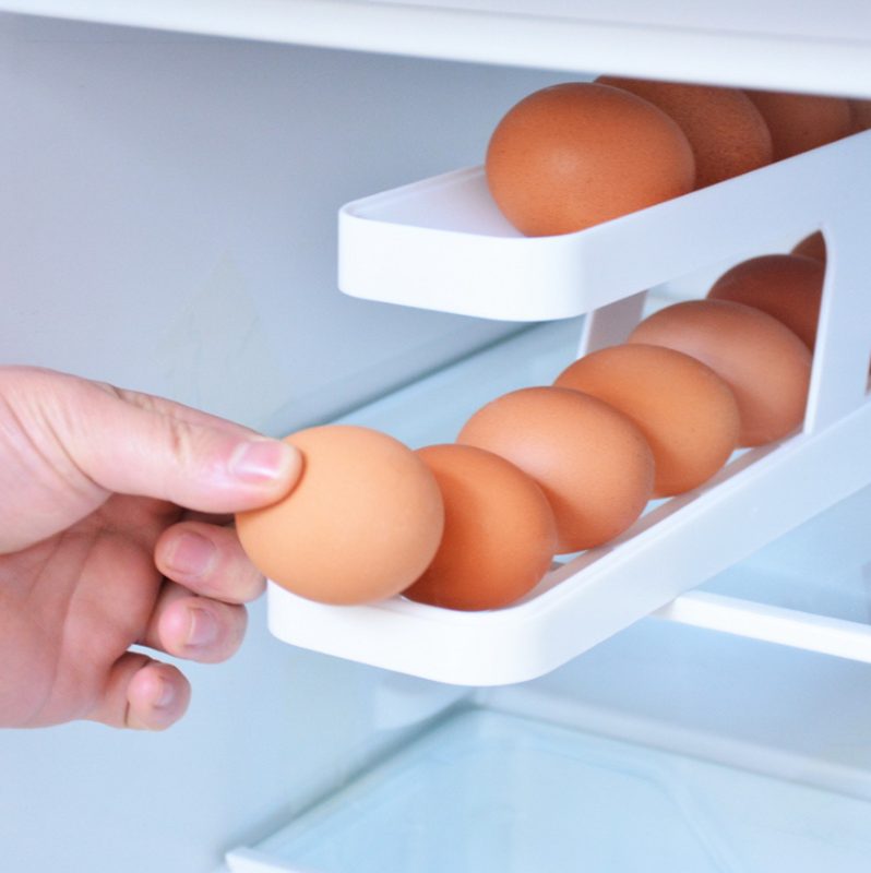 Automatic roll design: this rolling egg holder adopts a practical gravity structure, simply place the eggs in the organiser and the eggs will automatically roll to the egg outlet.