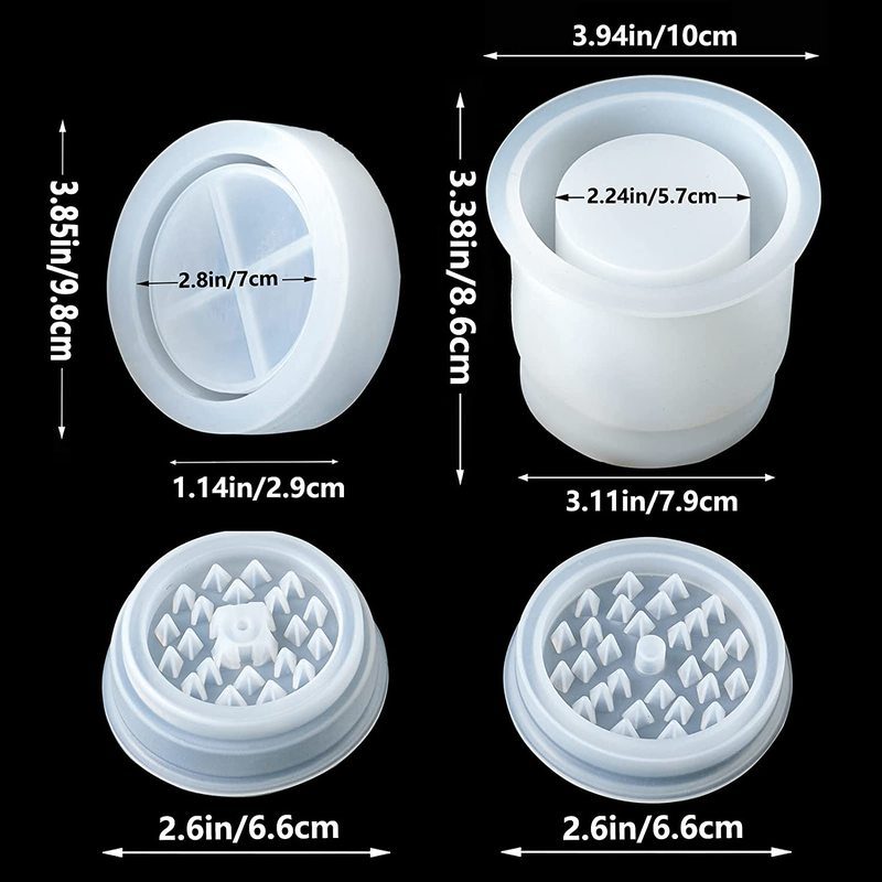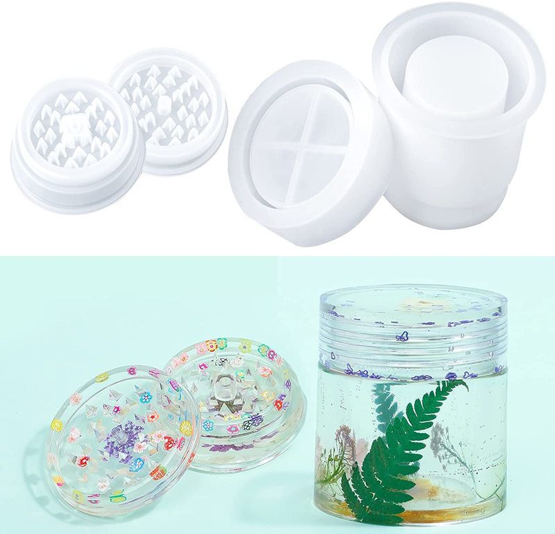 Silicone Epoxy Casting Molds Set:This package includes 1 pair of spice grinder resin mold and 1 silicone large round jar resin mold with lid.