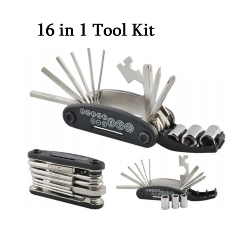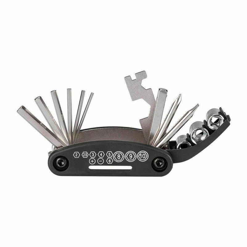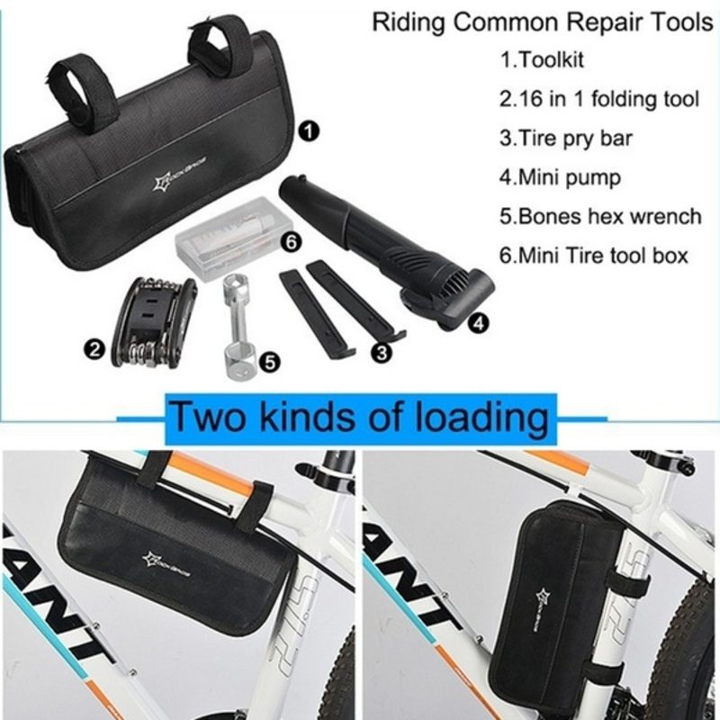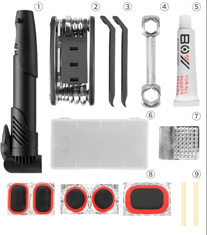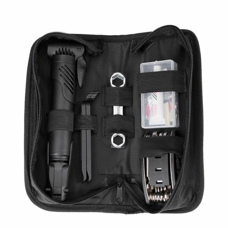Brand New Black RockBros Bicycle Bike Cycling Portable Tyre Repair Kit Tools Easy to Carry Organiser Bag With 16 in 1 Mini Pocket Multi-function Tool