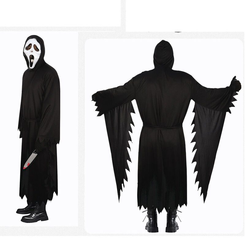 An excellent costume for Men or Women featuring the costume from the movie "Scream". This set includes a full hooded robe, belt, and "Scream Mask"