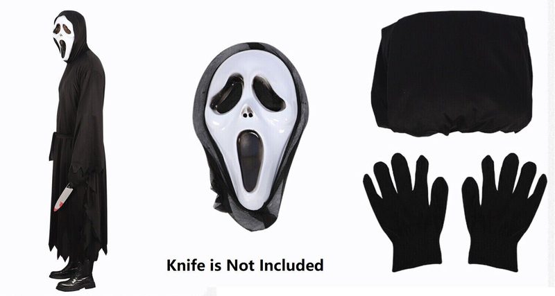 Brand New Scream Costume with Scary Ghost Face Mask for Halloween Prop Adult One Size