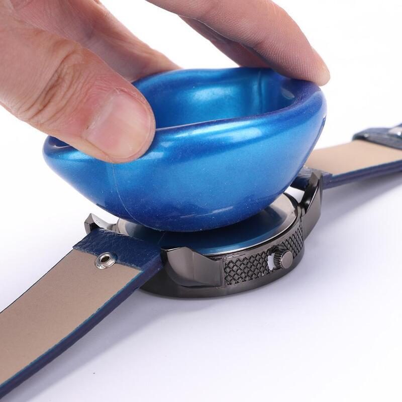 It's smart design allows it to fit and evenly grip the surface, giving it more strength yet never scratching your watch. Easy to use; simply squeeze, press, then turn.