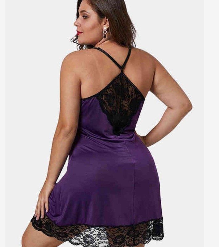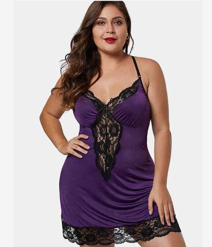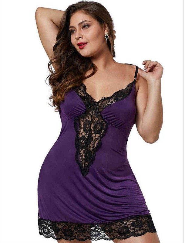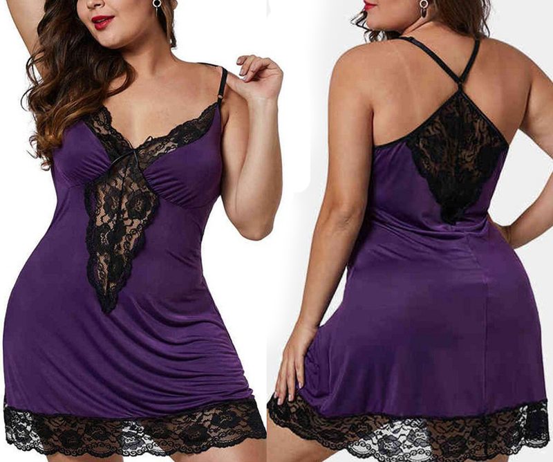 Brand New SEXY LINGERIE Purple Lace Strappy Plunge Gown Robe Mini Dress Pajamas Dressing Gown Nighty Robe Sleepwear Nightie Gown Camisole Babydoll Mini Dresses Womens Clothing Clothes Plus Size
