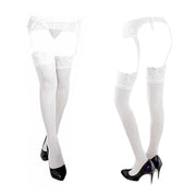 SEXY LINGERIE White Lace Garter Suspender Belt + Stockings Pantyhose Tights Womens Clothing Clothes Accessories