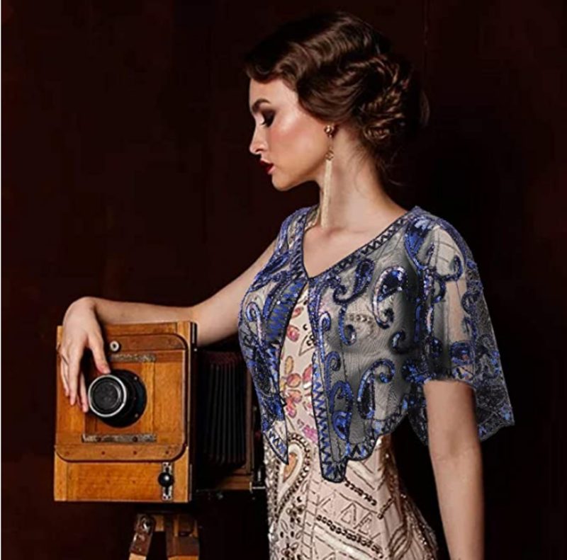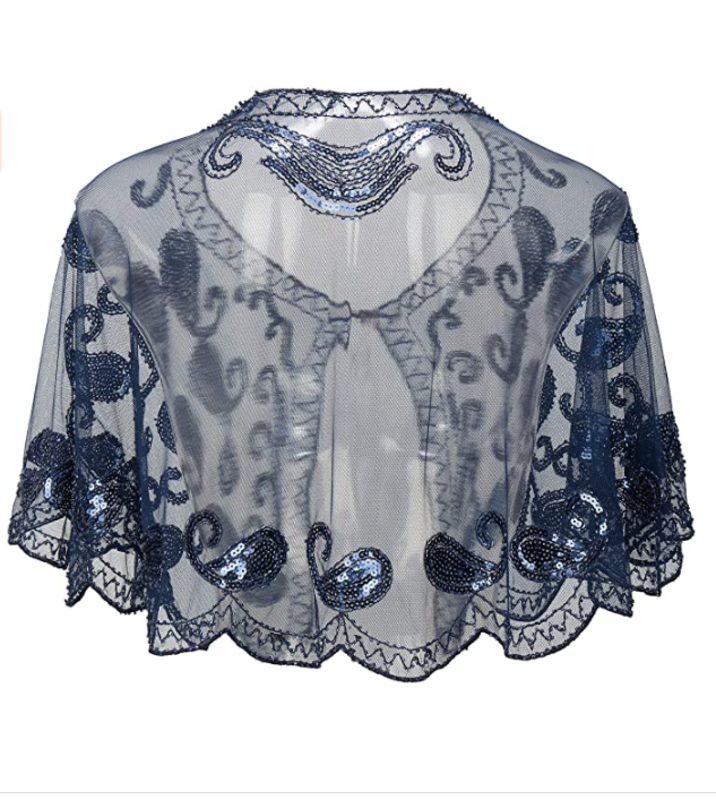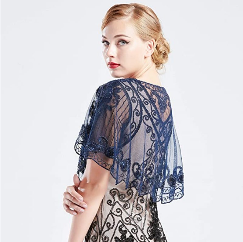 Women's 1920s Quality Vintage Blue Beads Sequin Party Flapper Boutique Shawl Wraps Beaded Evening Cape Wedding Bridal Shawl Scarf Bolero Flapper Evening Cape For Gatbsy Prom Formal Shrug Bolero Coat Bridal Stole Formal Shoulder Cover Scarf Jacket Wedding Accessories Womens Clothing Clothes
