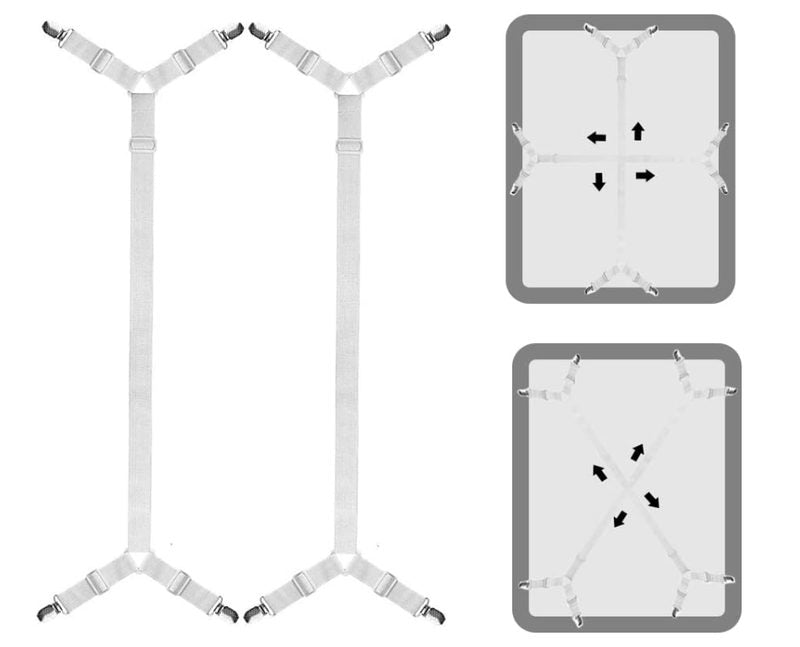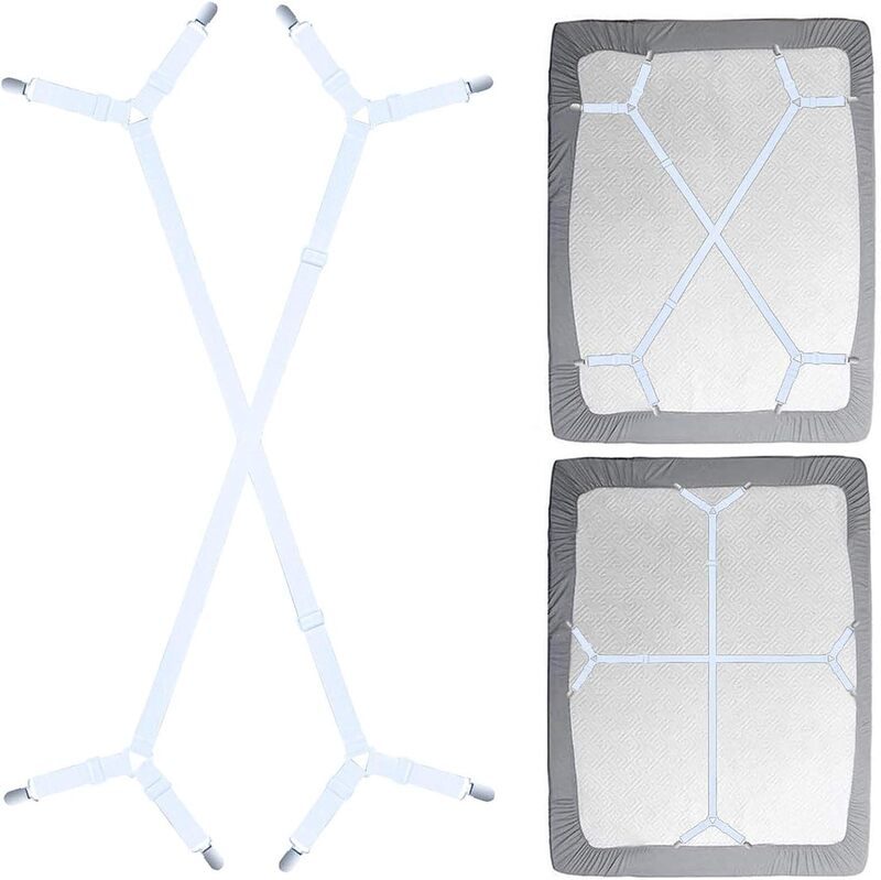 Brand New 2pcs Bed Sheet Holder Straps, Adjustable Crisscross Clips Elastic Band Fitted Bed Sheet Fasten Suspenders Grippers, Adjustable Suspenders Grippers Elastic Band (White, 2pcs)