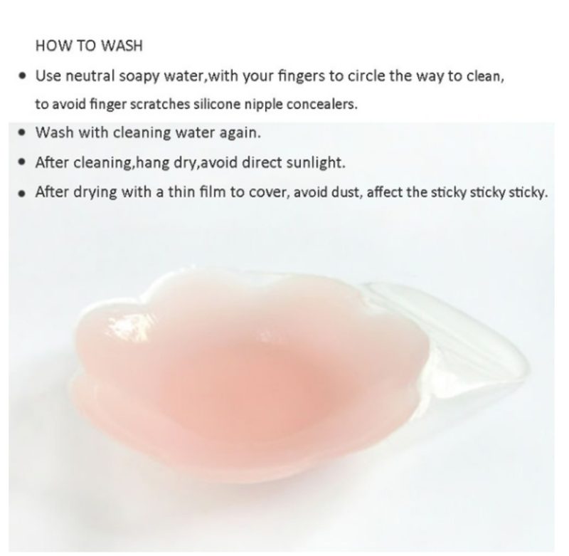 The covers are self adhesive, washable and reusable. It is a perfect choice for a smooth look with or without your bra, especially when wearing under T-shirts, sweaters, sheer bras, sports bras, and bathing suits or figure-hugging dress, etc.