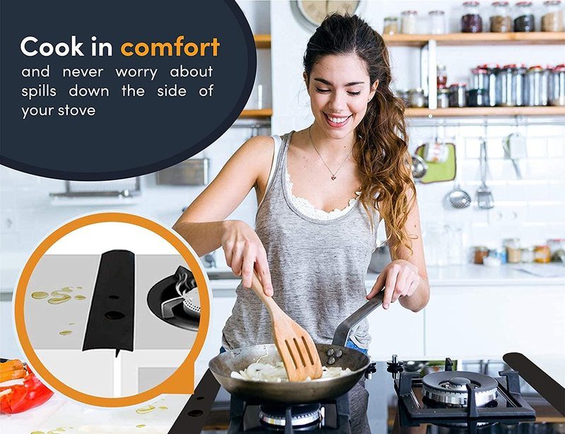 This auction is for Brand New 2pcs Silicone Stove Counter Gap Covers, Heat Resistant Oven Gap Filler Seals Gaps Between Stovetop and Counter, Flexible Kitchen Tool Healthy and Durable Gap Cover Easy to Clean (25 Inches, Black)
