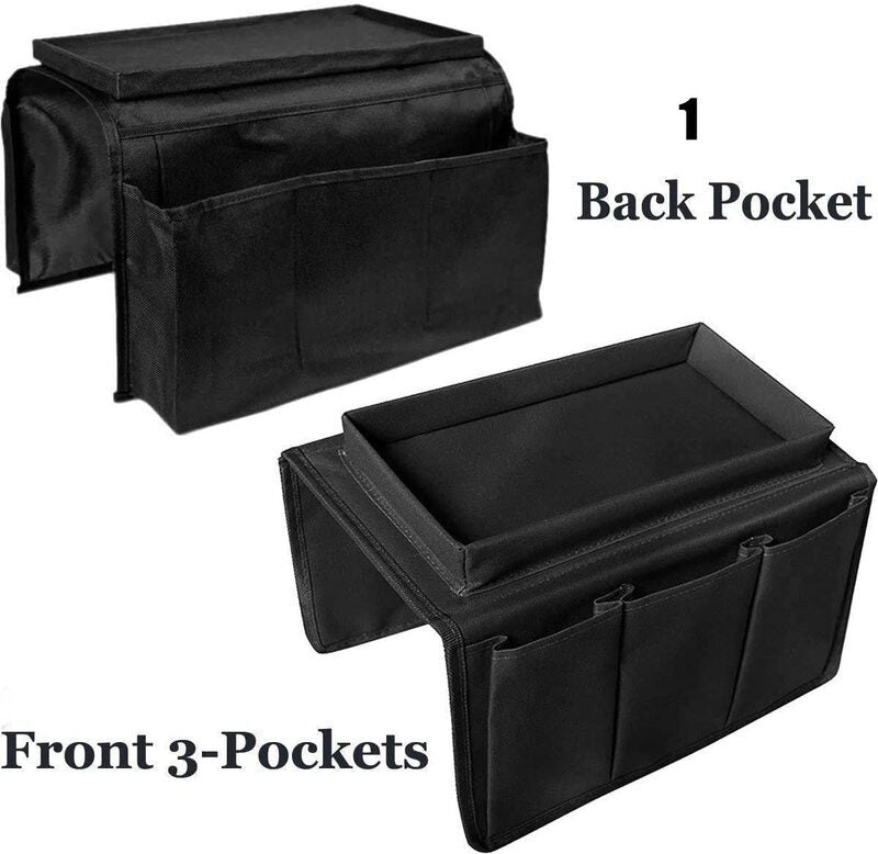 5 side pockets provide enough room to hold cellphone,TV remote controller,iPad tablets, keys, glasses, tissues, books, pens, DVD, notepad,cups, and more. Perfect bed storage caddy!