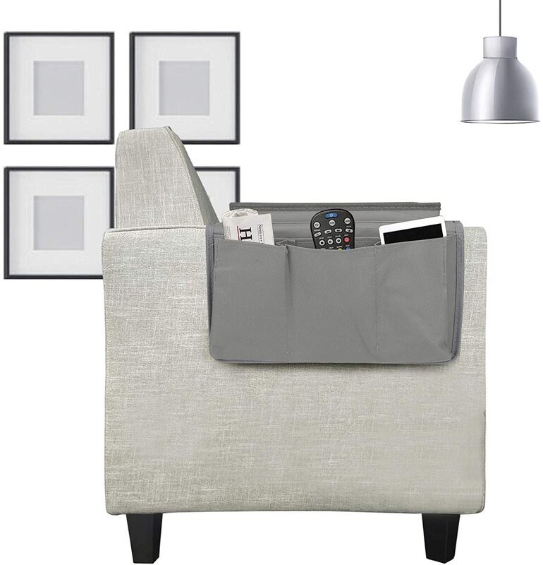 Brand New Waterproof Pockets TV Remote Control Holder Couch Sofa Chair Rest Organiser Pouch Tray Armchair Caddy Storage Holder Table Armrest Organiser Oxford Chair Couch Caddy Sofa Armrest Bag Bedside Storage Hanging Organiser for Magazine Books Snack Mobile DVD Cellphone Drinker (Grey)