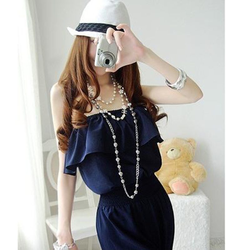 Brand New Designer Style Quality Deep Blue Ruffle Strapless Jumpsuit Pants Trousers Dress Womens Clothing Clothes