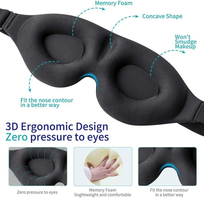Brand New 3D Sleep Mask, Sleep Eye Masks for Men or Women, 3D Contoured Cup Sleeping Mask & Blindfold, Concave Molded Night Sleep Mask, Block Out Light, Soft Comfort Eye Shade Cover, Molded Eye Shade with Adjustable Strap, Memory Foam Eye Pillow Soft Comfy Eye Shade for Night Shift, Travel, Nap, Yoga