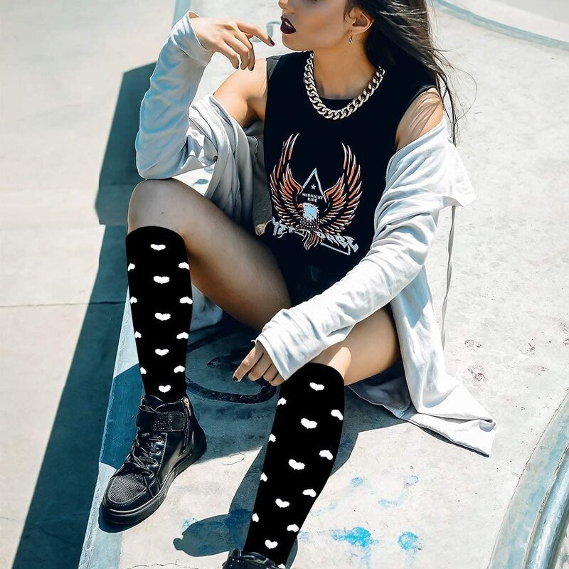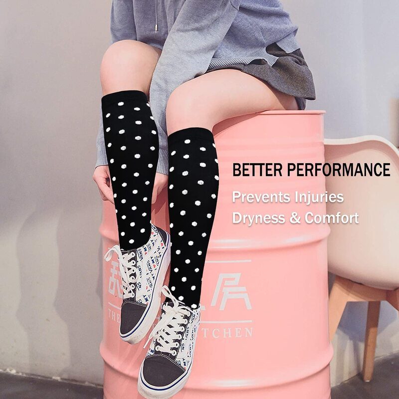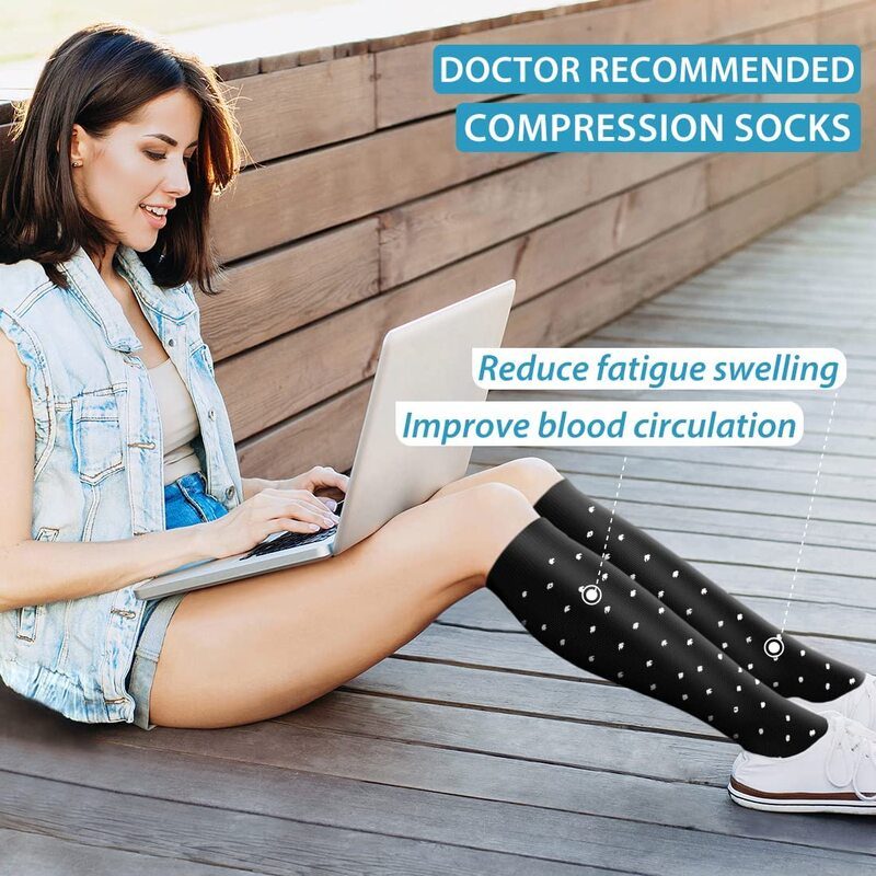 Compression socks are designed to help increase circulation, improve leg and foot comfort, and reduce soreness and swelling, increase energy, All day comfort.Great for long periods of sitting or standing, endurance sports, flying and travel, post-workout recovery, pregnancy, and spider & varicose veins. *Dense structure excellently supports the varicose veins. *Optimal compression (20-30 mmHg) increases blood flow during a long flight and prevents swelling. *Carefully designed and the pattern design is very distinctive.