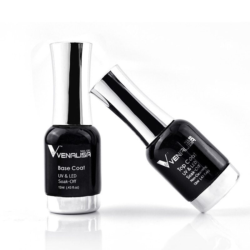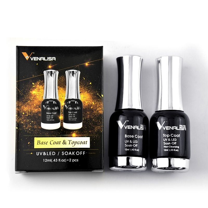 Brand New VENALISA Long Wear No Wipe Top Coat Base Coat Kits Soak off LED UV Gel 2pcs Set Base Coat Gel Top Coat Gel Clear Top Base Coat UV LED Gel Nail Polish, No Wipe, Mirror Manicure Pedicure Lacquer