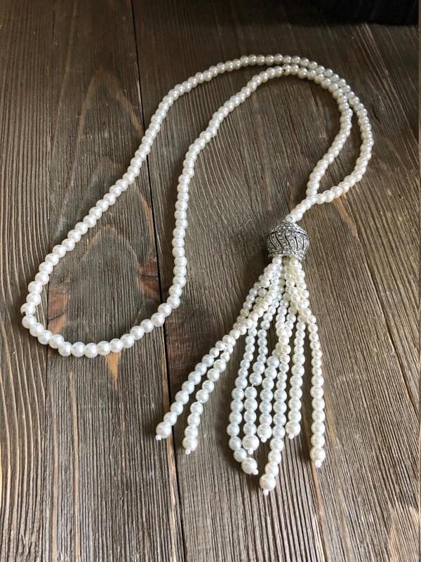 Vintage Style 1920's Great Gatsby Flapper Pearl Beaded Necklace Jewelry Gatsby Accessories perfect for your 1920's Great Gatsby themed party, art themed party, wedding, homecoming, prom, anniversary, formal party. Goes well with flapper dress, vintage outfit, or any dress up that needs extra finishing touch, also excellent for everyday wear!