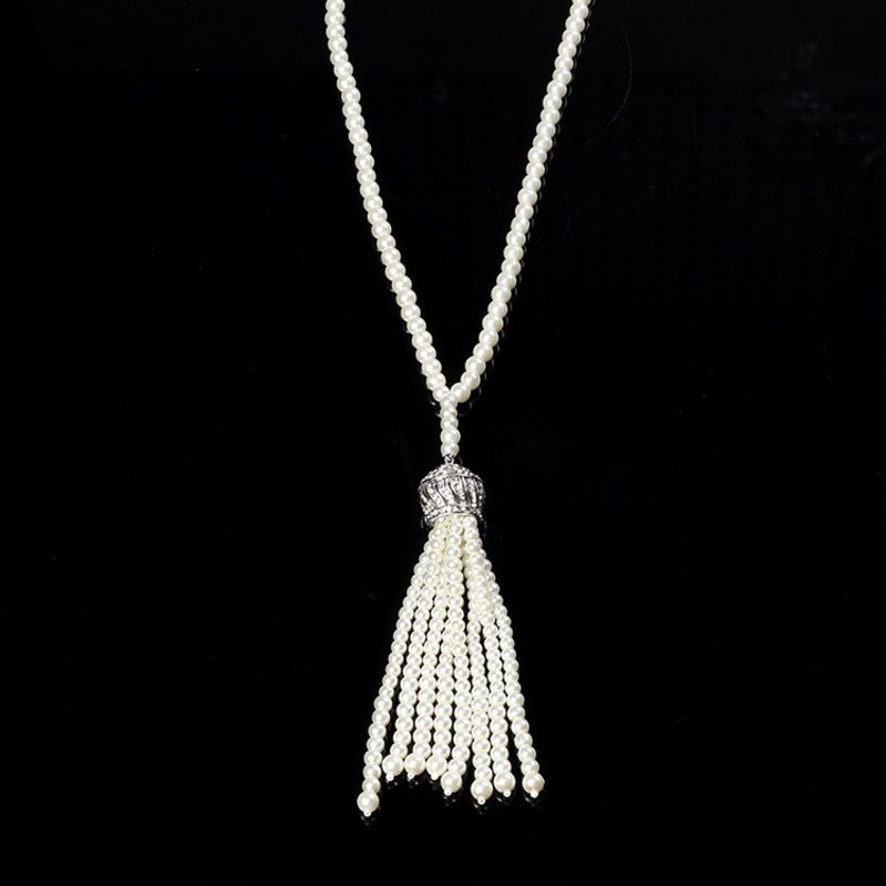 Great Gatsby 1920s Faux Pearls Tassels Necklace Vintage Costume Long Necklace Flapper Party Ball Theme Night Dancer Jewelry Wedding Bridal Gift Womens Accessories Rockabilly Clothing Perfect Christmas Gift