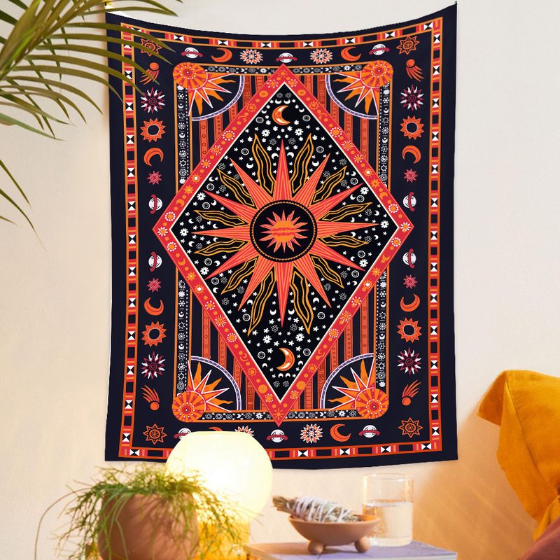 Function: Tapestry, Wall Decor, Beach Scarf, Picnic/Yoga Mat, Bedspread, Bed Cover, Couch Cover, Tapestry, Curtain, Wall Hanging Or Table Cloth, Beach Blanket, Picnic bedspread, Festival Flag, Room Divider, Curtains,Table cloth, Altar cloth, Furniture throw, Home decor, Room Divider.