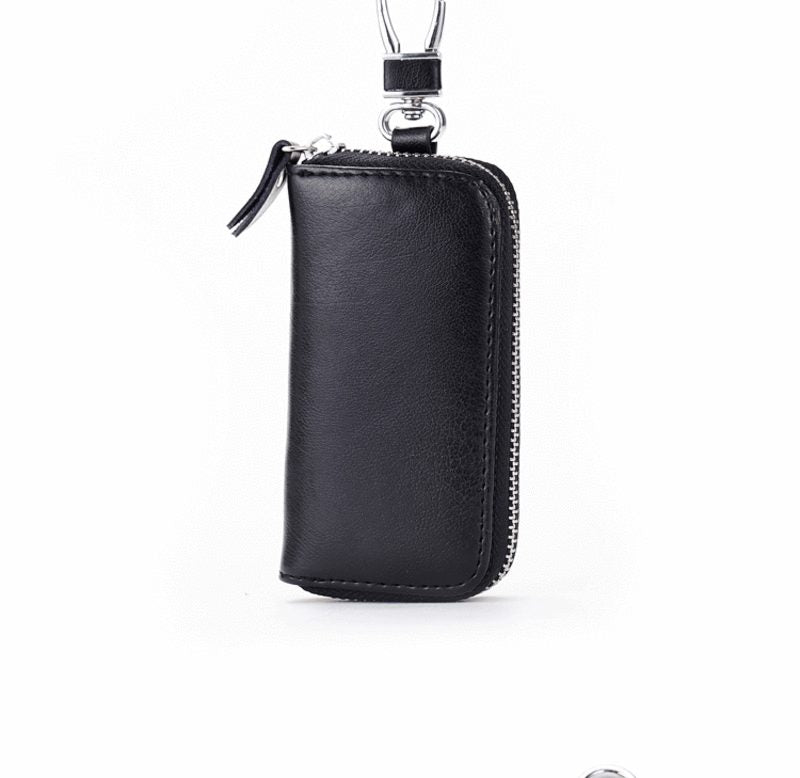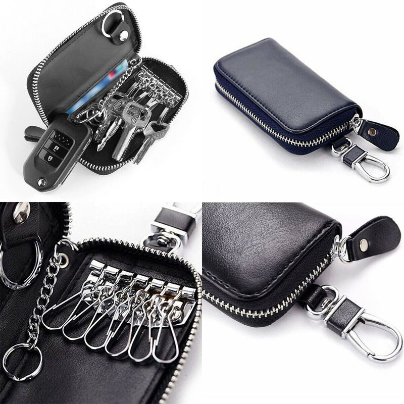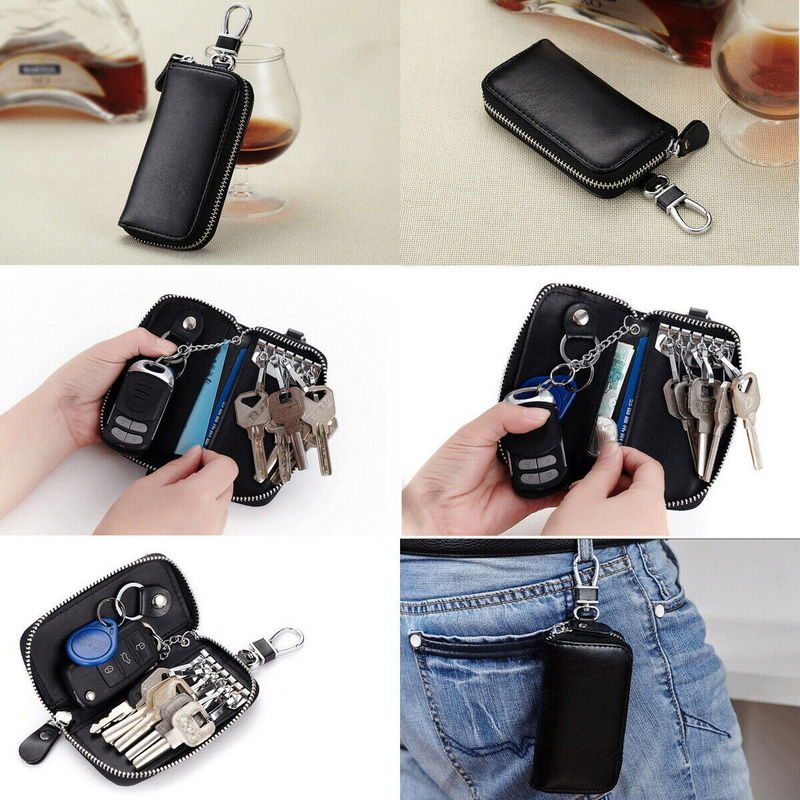 Black Genuine Leather Key Case Remote Holder Unisex Credit Card ID Holder Mini Purse Wallet Mens Wallet Womens Wallet Perfect Christmas Gift