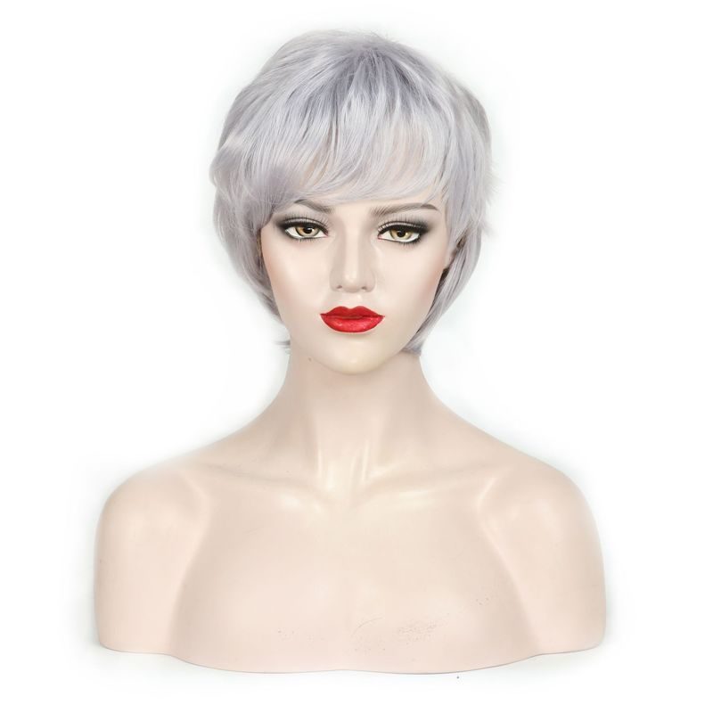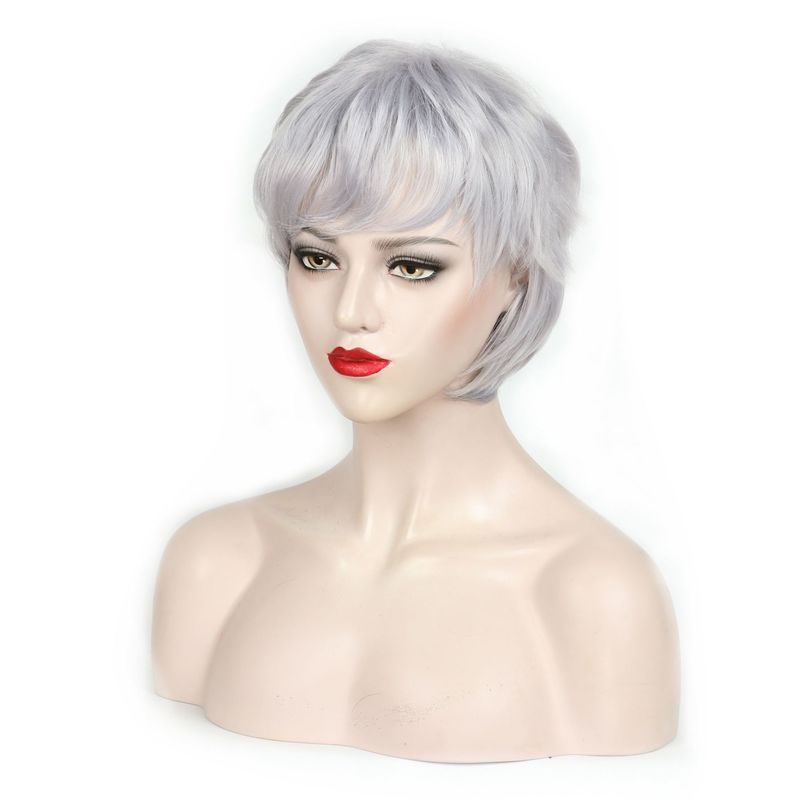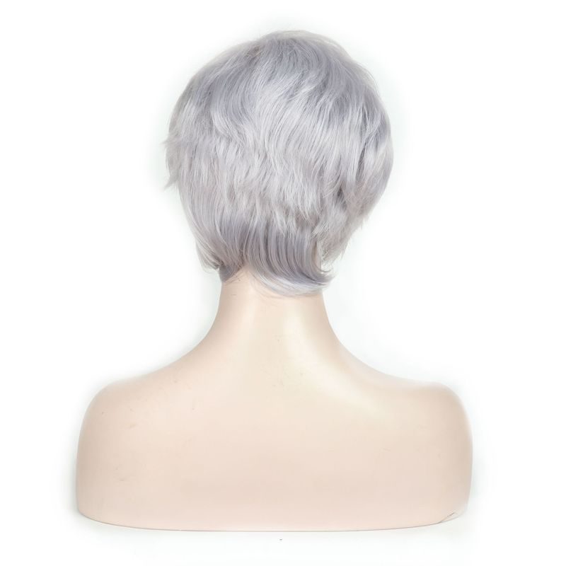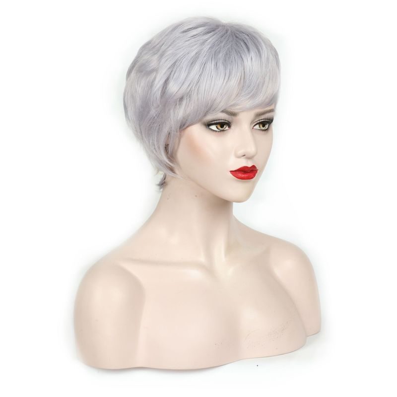 Quality Silver Grey Wave Layer Cut Short Pixie Wig w Bangs Cosplay Wig Daily Wig Party Wig Womens Accessories Perfect Christmas Gift