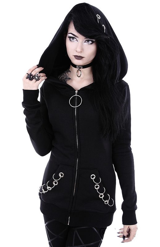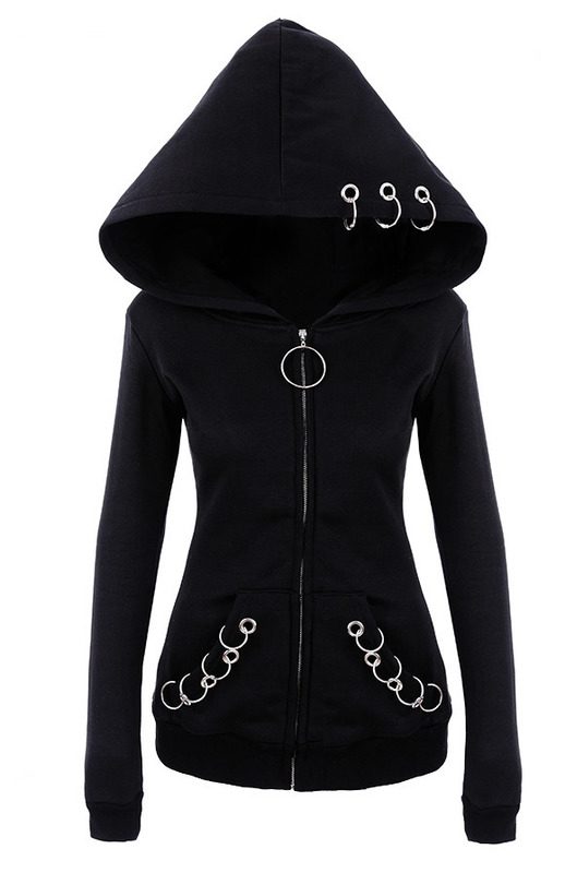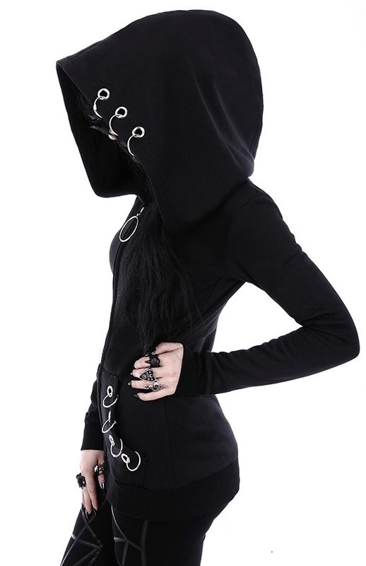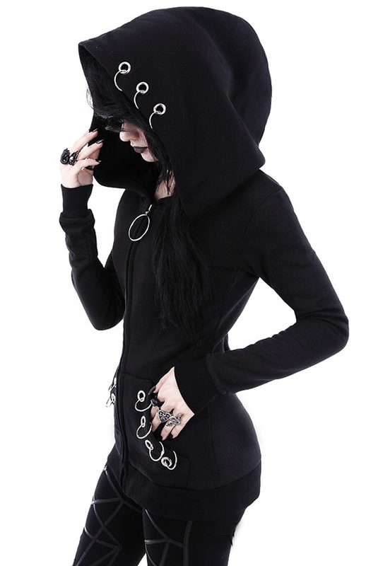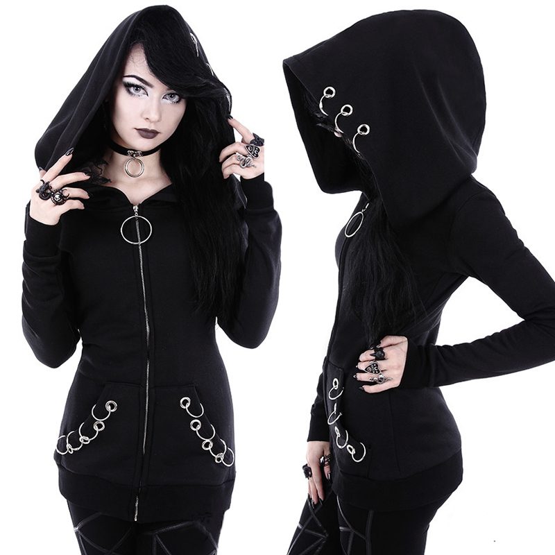 Black Witch Craft Punk Gothic Loops Fleece Hoodie Sweatshirt Top Jumper Jersey Sweatshirts Top Womens Clothing Clothes Plus Size