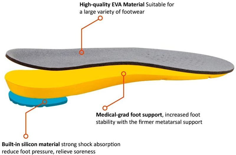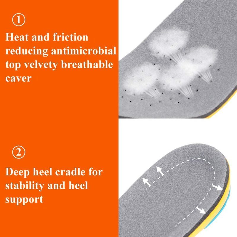 *Premium Material: Crafted from high-quality and durable medical-grade dual base layered high-performance EVA foam and PU material, these comfortable orthotic inserts make your feet feel like you're walking on clouds! Deep heel cradle for stability, top fabric and a low profile ultra-thin design ensures your feet get the best tender loving care they deserve - anywhere, anytime, use after use! Perfect for improving performance physical activity.